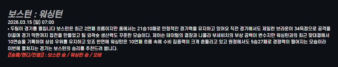 보스턴 : 워싱턴