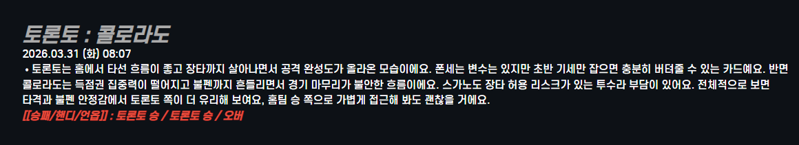 토론토 : 콜로라도