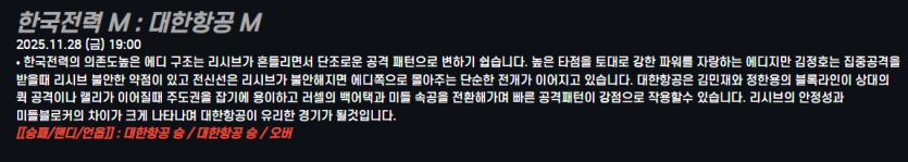 한국전력 M : 대한항공 M