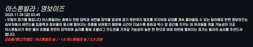 아스톤빌라 : 영보이즈