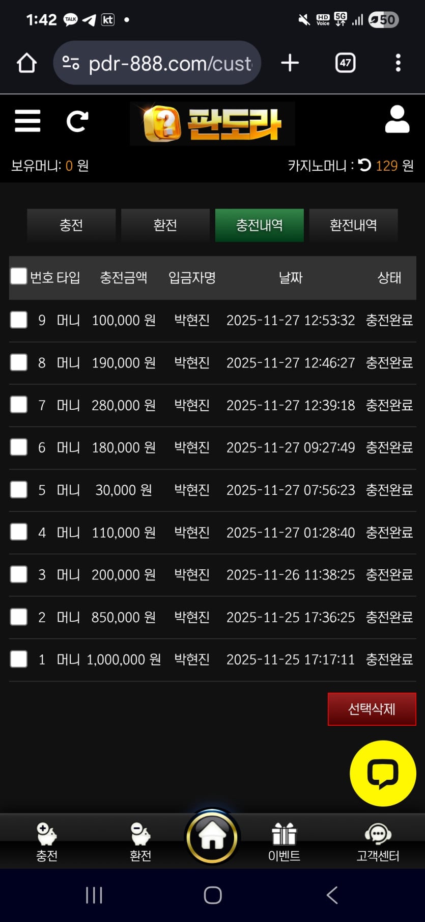 환전 시간 빠른 편이고 충전 후 환전까지의 시간 제한 없는 점 정말 좋았습니다