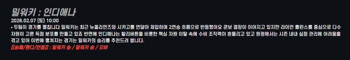 밀워키 : 인디애나