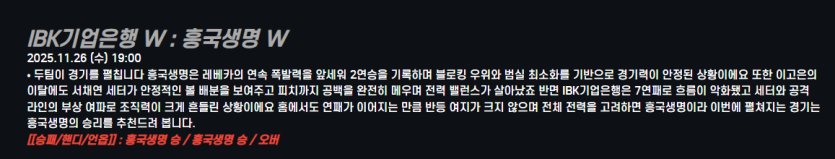 IBK기업은행 W : 흥국생명 W