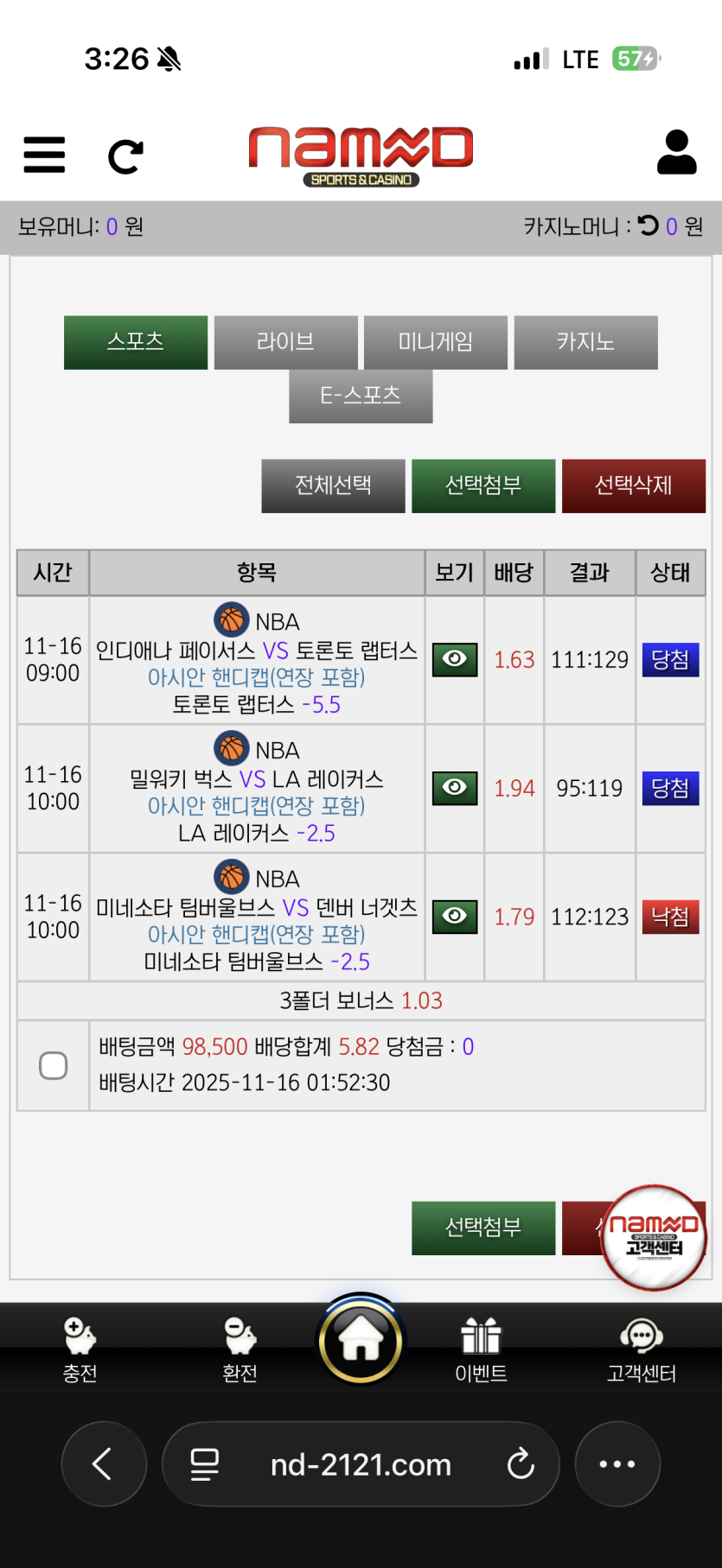 넴드 스포츠 배당 나쁘지 않고 겜 잘풀리고 이번껀 까비ㅜㅜ