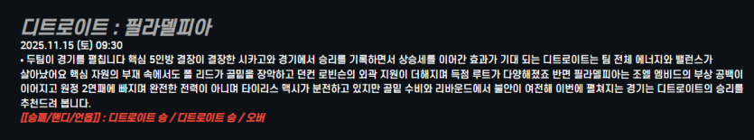 디트로이트 : 필라델피아