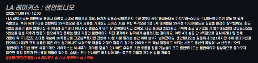LA 레이커스 : 샌안토니오