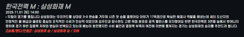 한국전력 M : 삼성화재 M