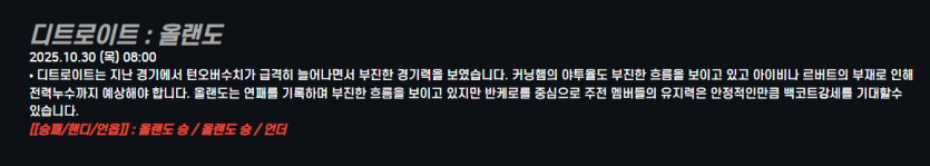 디트로이트 : 올랜도