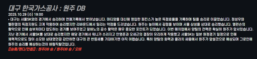 대구 한국가스공사 : 원주 DB