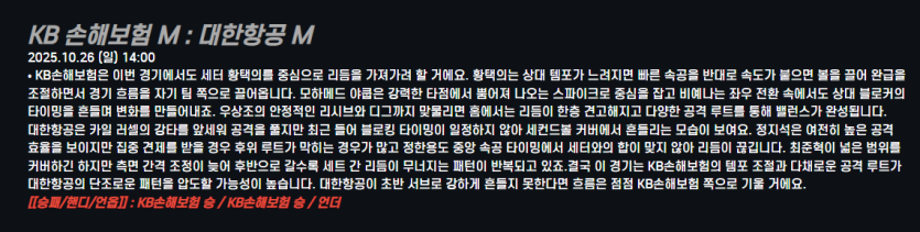 KB 손해보험 M : 대한항공 M
