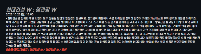현대건설 W : 정관장 W
