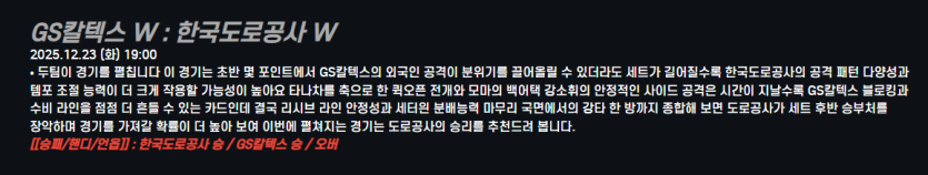 GS칼텍스 W : 한국도로공사 W
