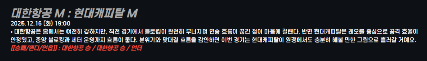대한항공 M : 현대캐피탈 M