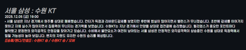 서울 삼성 : 수원 KT