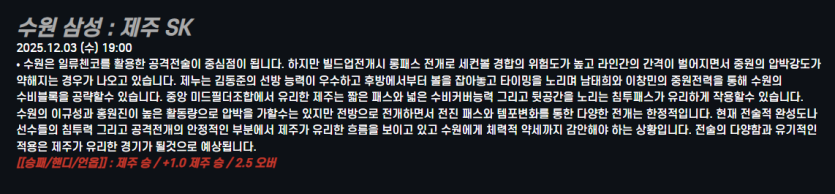 수원 삼성 : 제주 SK