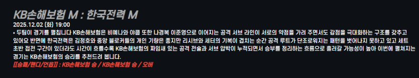KB손해보험 M : 한국전력 M