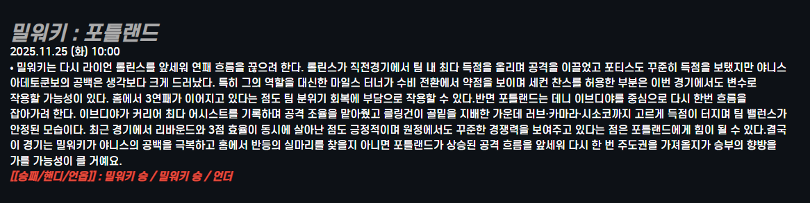 밀워키 : 포틀랜드