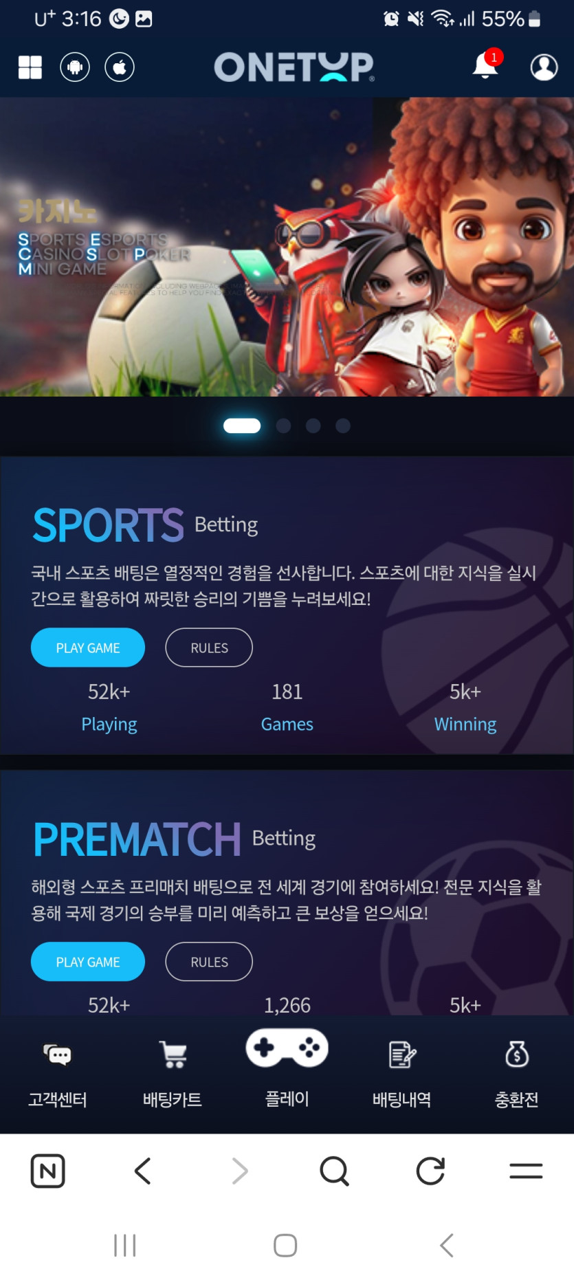 원탑카지노 소개해드리겠습니다 여기는 다른곳보다 이벤트가 다양하게 많아서 너무좋고 충전보너스도 있습니다 여태 사용한곳에서 제일 좋은거 같습니다 충전환전 빠르고 제일중요한건 환전이 제일이죠 먹튀단한번도 없었고 검증이된 메이져 카지노 입니다