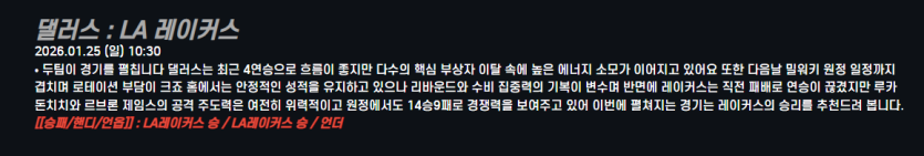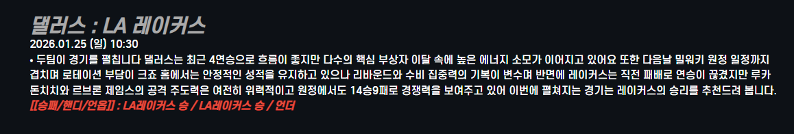 댈러스 : LA 레이커스