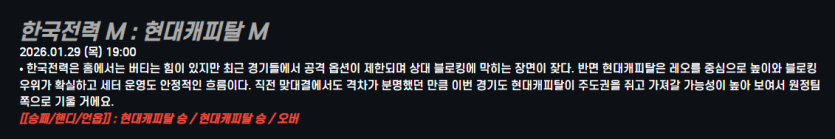 한국전력 M : 현대캐피탈 M