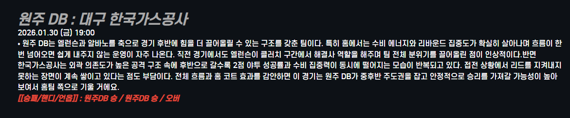 원주 DB : 대구 한국가스공사