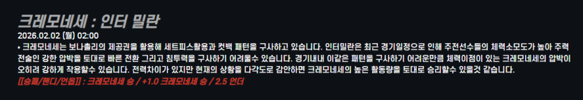 크레모네세 : 인터 밀란