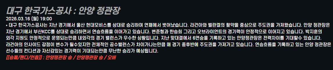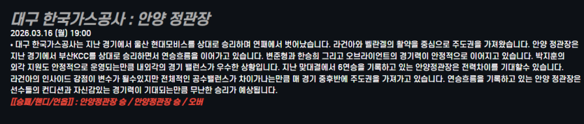 대구 한국가스공사 : 안양 정관장