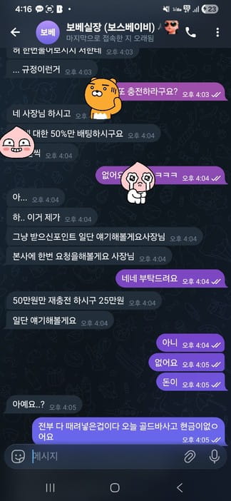 3번 이상 베팅했다고 규정드립 꺼내옴 밑에 스크린샷에서도 보이듯 추가입금 유도함
