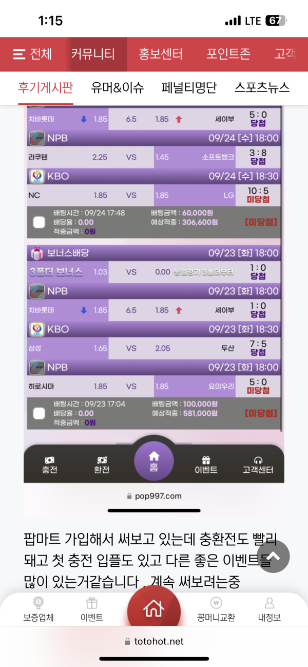 팝마트 이용하고 있는데 사이트도 이쁘고 괜찮은거같습니다 . 충환전 속도도 빠르고 다양한 이벤트들이 많아서 이용하고 있습니다 . 추천드립니다