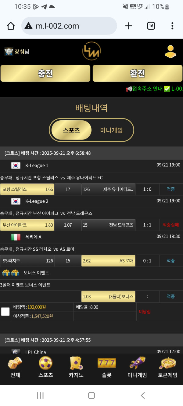 이끌리ㅁ 이란 곳 강추드립니다 사고일절없고 그리고무엇보다 충전자주하면포인트완전많이챙겨주네요 있을법한겜도다있고 결과처리도빠르고 롤링도그렇게 빡세지않아서 환전하기쉽네요 ㅎㅎ