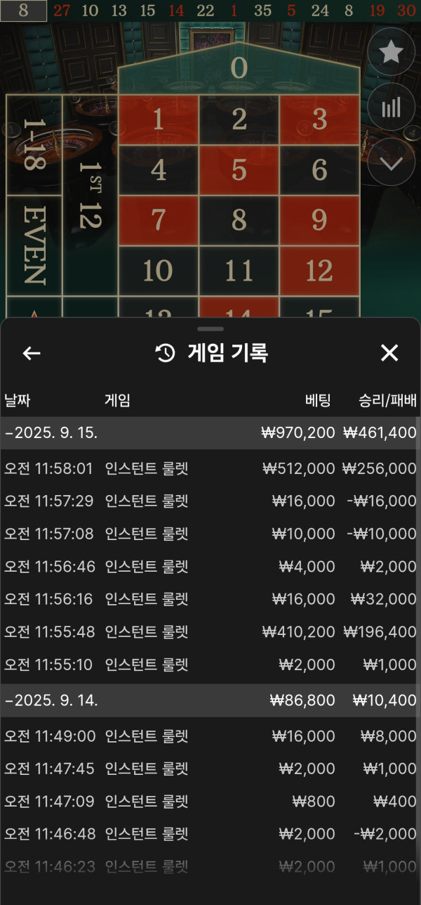 올인벳이 계속 나가네요