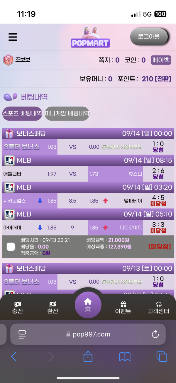 가장 마음에 드는 부분은 다양한 이벤트였는데, 특히 돌발 충전 이벤트나 각종 포인트 지급 이벤트가 자주 열려서 소소하게 즐기면서도 혜택을 꾸준히 챙길 수 있었습니다. 이런 보너스 혜택이 쌓이다 보니 실제 베팅할 때 꽤 큰 도움이 되고, 다른 사이트들에 비해 이용자들을 많이 배려한다는 느낌을 받았습니다. 추천 드려요