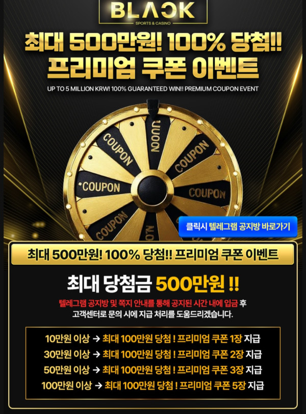 충환전 빠르게 잘 나오구요 위에 이벤트는 공지된 시간내에 충전하면 최대 500만원 당첨이 가능한 쿠폰을 주는데요 우선 꽝이 없어서 좋고 입금 보너스 포인트까지 받을 수 있어서 많이 챙겨볼 수 있습니다. 저는 최대 7만원까지 당첨됐습니다