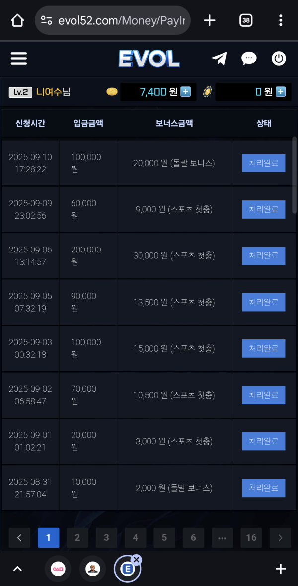 현재 제일 자주 이용하는 사이트입니다 다양한 이벤트가 현재 진행중인데 그중에서 저는 스코어 맞추기 이벤트를 좋아합니다 일정금액을 입금하면 이용할수있는데 유저들을 위해 다양한 이벤트로 많이 주는 사이트입니다 다들 한번식 이용해봇세요