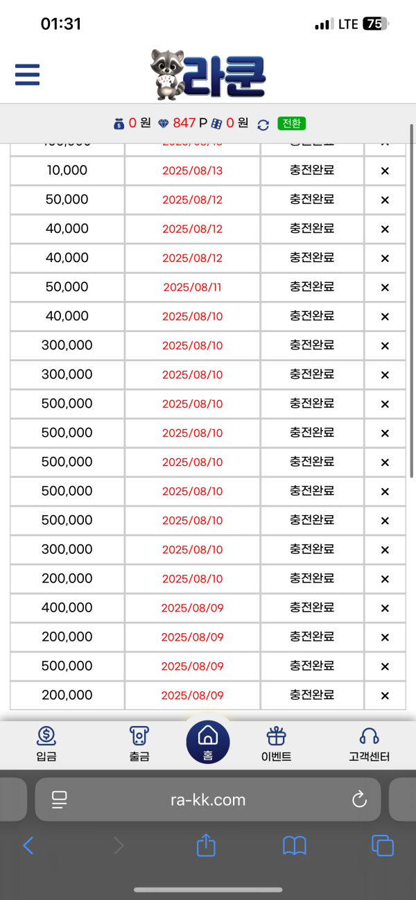 라쿤 신규이벤트 타사이트에 비해 진짜 빵빵하고 텔레친추 이벤트, 신규입플, 신규정착이벤트 놓치지 말고 다 받아봐요 환전이 진짜 빠르니까 이용하기 편하네요