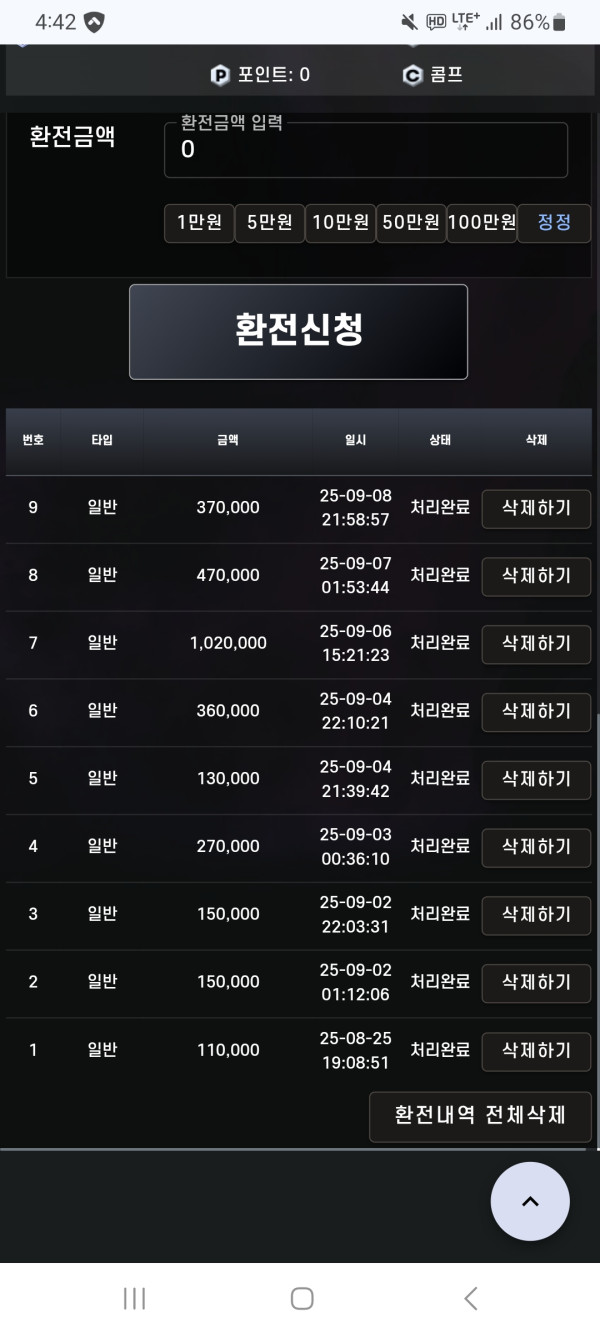 스포츠 환전을 5번해도 무한 10퍼 5퍼선택가능, 10퍼도 2폴만 하면됨