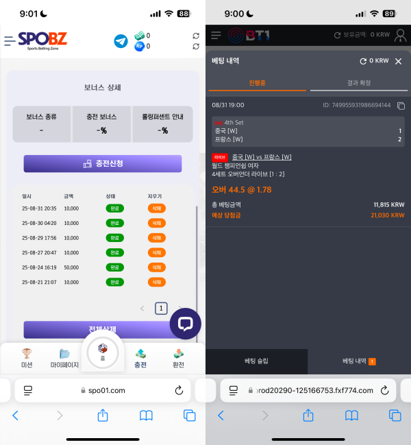 다른 사이트는 실시간 배팅 배당이 변경됐다고 해서 배팅자꾸 안돼서