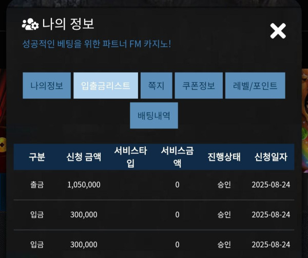 30입금 105출금 감사합니다..ㅠ