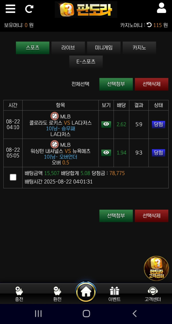수익봤고 스포츠도 배당 너무좋아서 짜투리로 걸었는데이거마저 먹어버리네요ㅋㅋㅋ