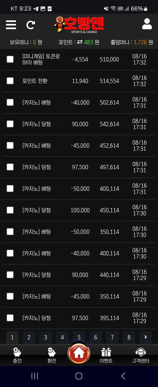 충환전 시간 잘지켜주고 이벤트도 다양하고