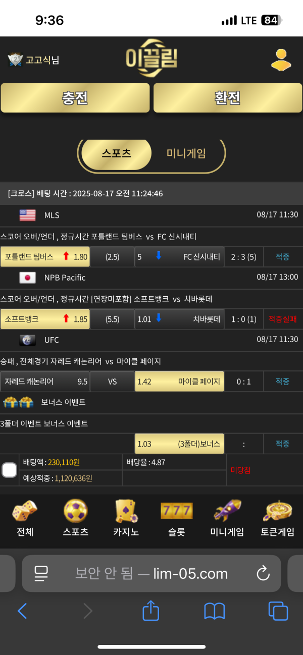 스포츠 사대도잘맞고 배당도잘빠졌어요