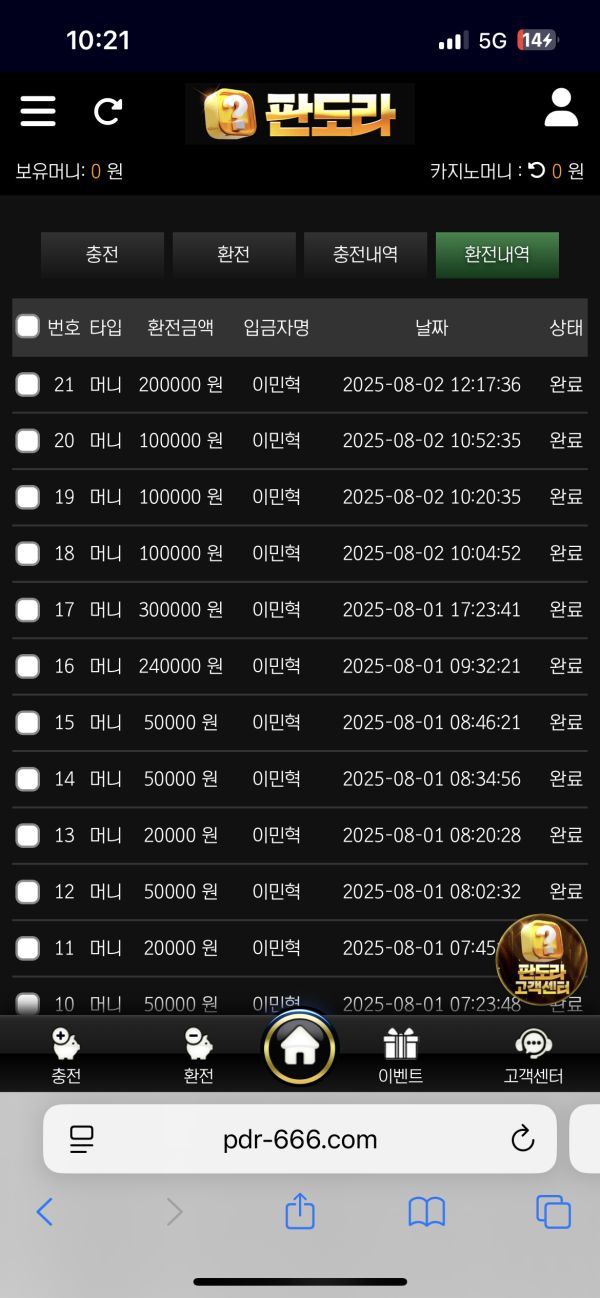 진짜 충전은 3분을 넘긴적도 없고 환전도 너무 스피드하고