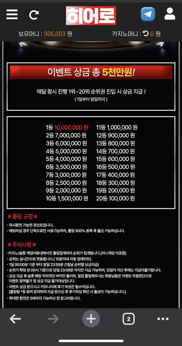 마침 매달 카지노 롤링이벤트 7월거 12위해서 8월1일지금