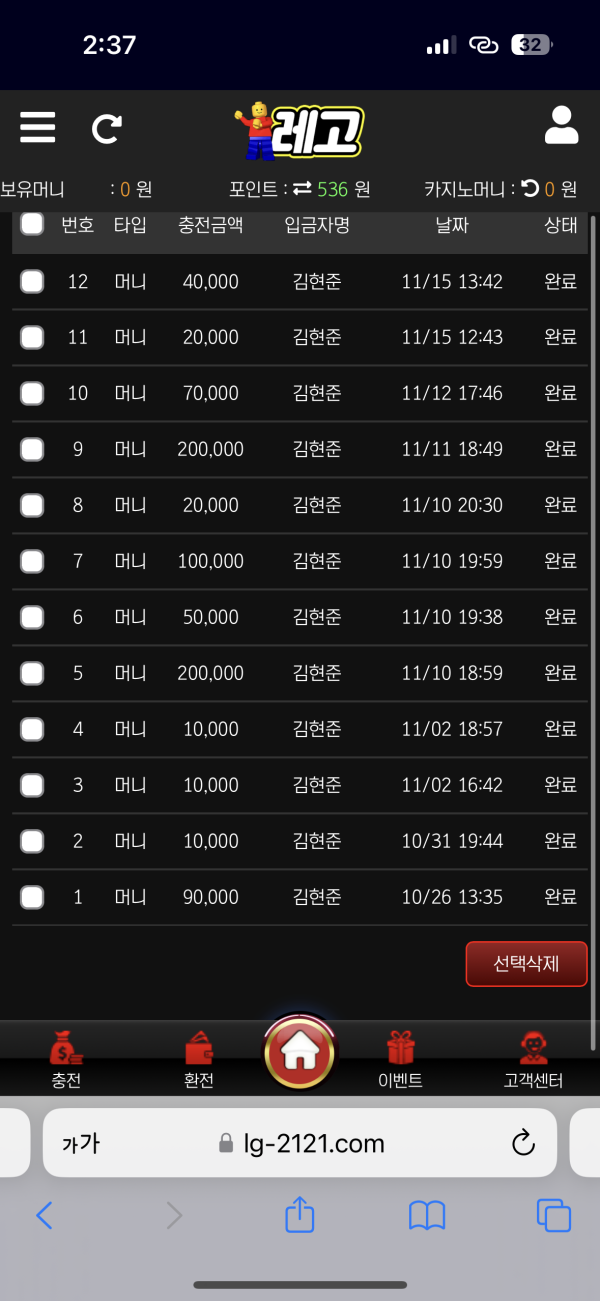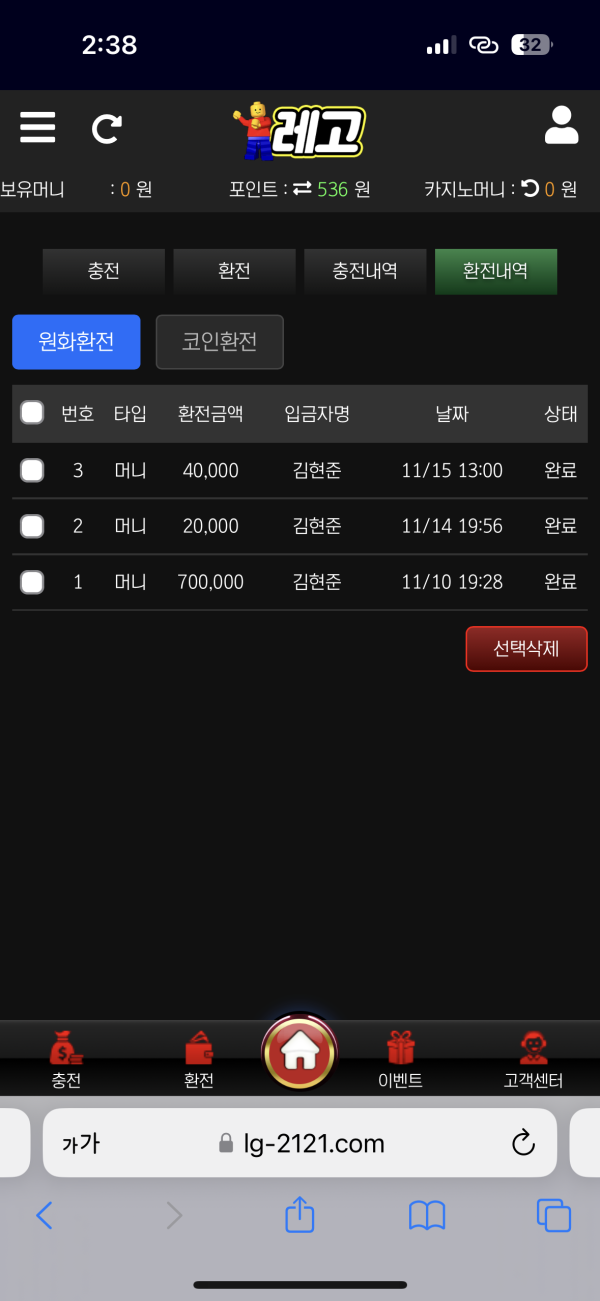 이 사이트는 먹튀가 절대 없는 사이트고 환전금액이 얼마든 빠른시간내에 환전을 해주는게 제일 큰 장점인거 같고 여러종류의 이벤트도 있어 포인트 지급도 많이 해주는 사이트 입니다