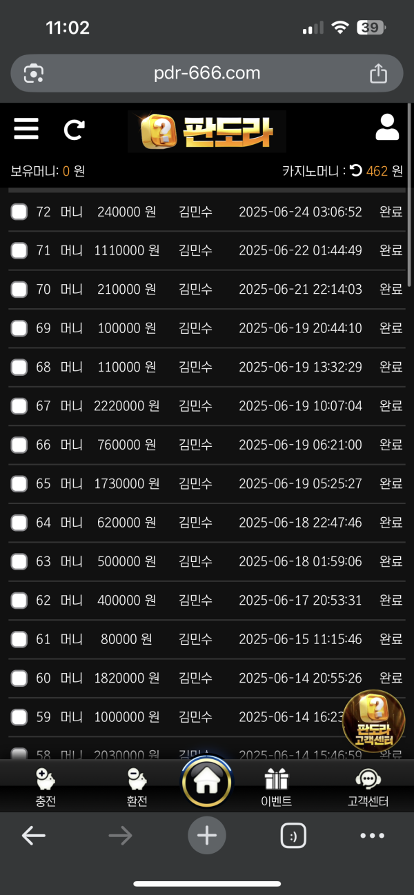 사이트에 이벤트가 많아서 좋고 스포츠하시는 분들은 경기가 많아서 장점이 있습니다 충환전은 당연 말할 것도 없고요 사이트 못찾으신 분들은 판도라 이용 강추드립니다!!