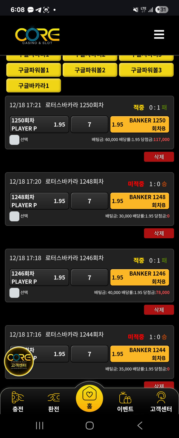 로투스바카러 10출 시작. 15환 소액이지만. 성공하내요