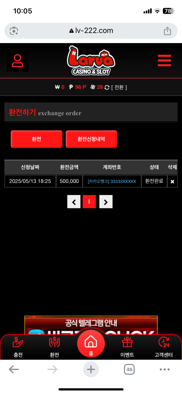 롤링 100프로 여서 찍고 바로 환전도 가능하고 충환전이 정말 빨라서