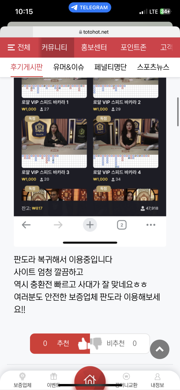 여러분도 안전한 보증업체 판도라 이용해보세요!!