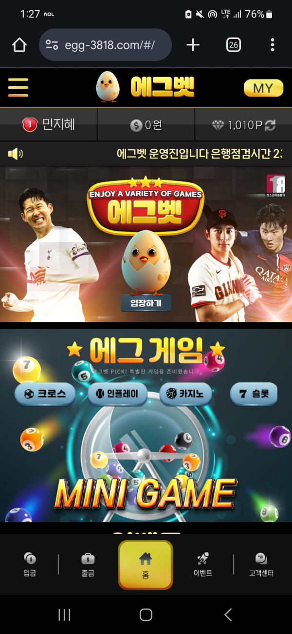 에그벳 처음 사용해봤는데 신규 입플이 우선 첫충 40프로라서 그 점이 가장 좋고 지인 추천 이벤트도 좋아서 계속 이용하면서 지인 추천도 하고 싶네요 앞으로도 계속 쓸 거 같습니다 에그벳 좋아여