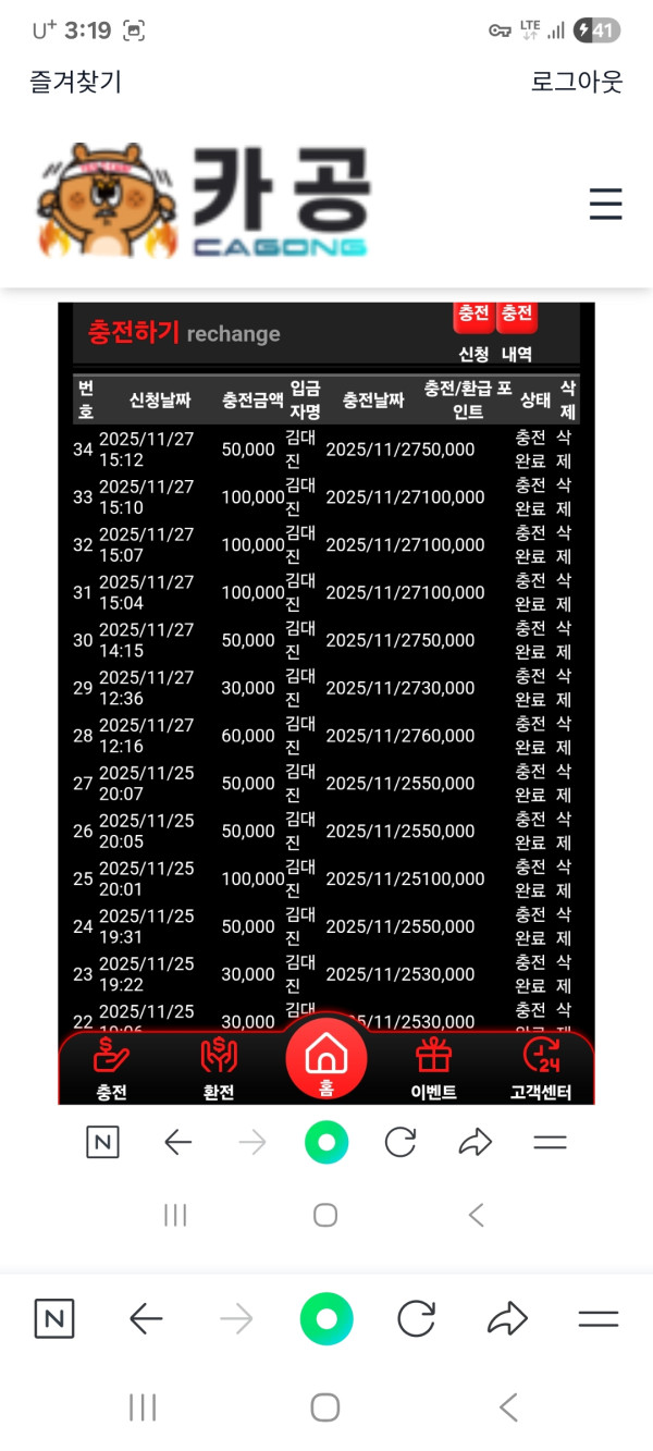 롤링도 100프로입니다 주말에는 2배 버닝 이벤트중이니 한번 이용해보시고 괜찮으면 지인추천도